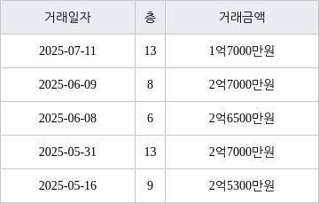 국토교통부 실거래가 공개시스템에 따르면 지난 2025년 7월 11일 인천광역시 연수구 옥련동 옥련현대2차 13층 전용면적 59㎡형이 1억7000만원에 거래됐다.