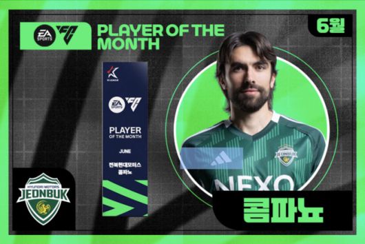 한편 전북은 지난 4월과 5월 전진우에 이어 6월에는 콤파뇨까지 수상자로 선정되며, 세달 연속 '이달의선수상' 수상자를 배출하게 됐다.