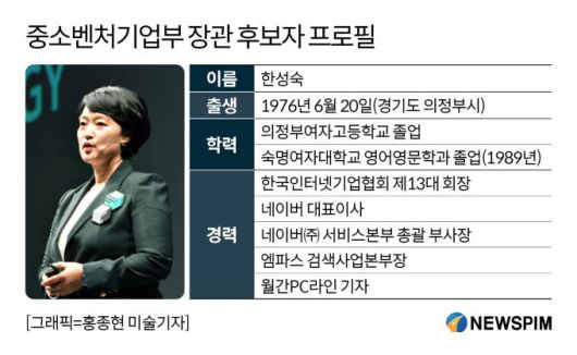 [세종=뉴스핌] 김기랑 기자 = 15일 열린 한성숙 중소벤처기업부 장관 후보자의 인사 청문회에서는 국내 대형 플랫폼이자 한 후보자가 과거 몸담았던 '네이버'와 관련한 각종 의혹이 쏟아졌다. 네이버의 독과점 문제와 성남FC 후원금 의혹, 직장 내 괴롭힘 사건 등이 거론됐다.