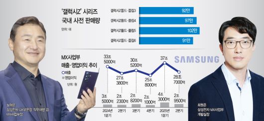 삼성전자가 차세대 폴더블폰 '갤럭시Z폴드·플립7' 사전예약 판매에 돌입했다. 삼성전자의 일곱번째 '갤럭시Z' 시리즈이자 실적 버팀목 역할을 하고 있는 MX사업부의 승부카드로, 하반기 실적을 예측하는 가늠자 역할을 할 전망이다. 일찍부터 초기 판매 성과에 관심이 모이는 가운데 MX사업부 '투톱'인 노태문 DX부문장 직무대행(사장)과 최원준 MX사업부 개발실장(사장)의 어깨도 무거워졌다. 치열해진 시장 경쟁으로 '폴더블폰 1위' 위상이 예전같지 않으면서 투톱 체제 리더십이 본격적인 시험대에 올랐단 평가가 나온다.
