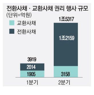 15일 한국예탁결제원에 따르면 올해 2분기 CB, EB 등 메자닌 채권의 권리 행사 규모는 총 1조5317억원으로 집계됐다.