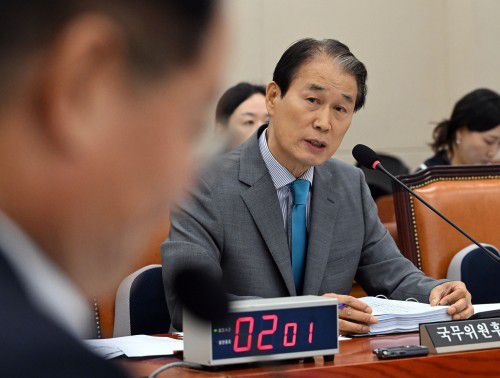 권오을 국가보훈부 장관 후보자가 15일 국회에서 열린 인사청문회에서 의원 질의에 답하고 있다. /송의주 기자 |