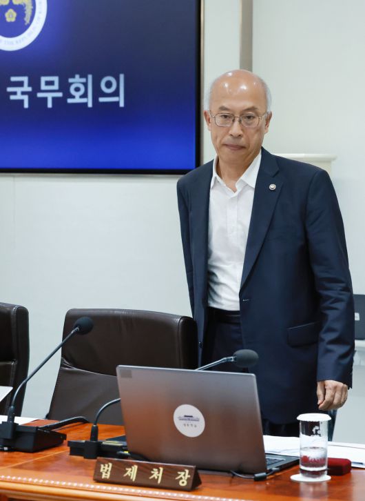 조원철 신임 법제처장이 15일 용산 대통령실 청사에서 열린 국무회의에 참석하고 있다. 연합뉴스 |
