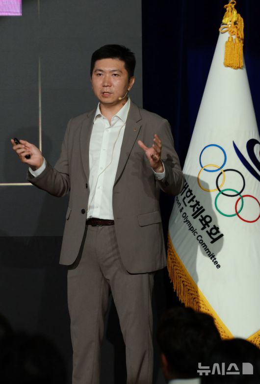 [서울=뉴시스] 이영환 기자 = 유승민 대한체육회장이 15일 오후 서울 노원구 태릉선수촌 챔피언하우스에서 열린 대한체육회 창립 105주년 기념행사에서 대한체육회 미래 비전에 대해 발표하고 있다. 2025.07.15. 20hwan@newsis.com |