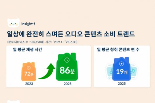 15일 국내 오디오 콘텐츠 플랫폼 코코지가 10만대 이상 코코지 기기에서 수집한 한국 사용자의 데이터를 분석한 결과에 따르면 코코지 사용자의 하루 평균 청취 시간은 86분으로 집계됐다. 코코지 사용자 데이터 수집이 시작된 2023년 9월과 비교하면 하루 평균 청취 시간(72분)보다 14분 늘었다.