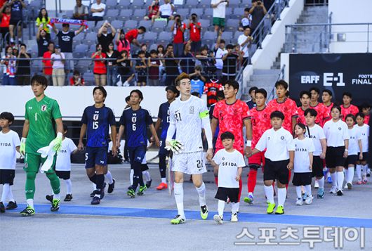 [용인(경기)=스포츠투데이 팽현준 기자] 15일 용인미르스타디움에서 열린 2025 EAFF E-1 챔피언십(동아시안컵) 한국과 일본의 경기, 선수들이 경기장으로 들어서고 있다. 2025.07.15. [스포츠투데이 팽현준 기자 sports@stoo.com]