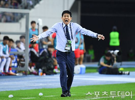 [용인(경기)=스포츠투데이 팽현준 기자] 15일 용인미르스타디움에서 열린 2025 EAFF E-1 챔피언십(동아시안컵) 한국과 일본의 경기, 일본 모리야스 하지메 감독이 반친 선언에 펄쩍 뛰고 있다. 2025.07.15. [스포츠투데이 팽현준 기자 sports@stoo.com]