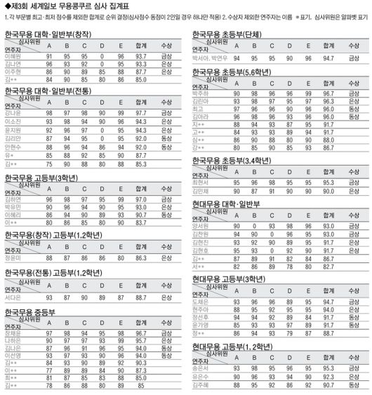 한국 무용 발전 주역 발굴을 위한 제3회 세계일보 무용콩쿠르에서 대학·일반부 이혜원(단국대 한국무용-창작)·강나윤(성균관대 한국무용-전통)·양서원(국민대 현대무용)·김찬원(한예종 현대무용)·조은희(경희대 발레), 고등부 김하연(덕원예고3·한국무용)·도채은(계원예고3·현대무용)·송은서(서울예고2·현대무용)·주서영(계원예고3·발레), 중등부 장채윤(선화예중3·한국무용)·이한결(계원예중3·현대무용)·진주하(선화예중2·발레)가 부문별 1등을 차지했다. 초등부에선 박주하(가온초6·한국무용)·최현서(파주와동초4·한국무용)·박서아(해누리초2·한국무용-단체)·박연우(가락초2·한국무용-단체)·맹지유(와부초6·발레)·한채린(윤슬초4·발레)이 각 부문 금상을 차지했다.