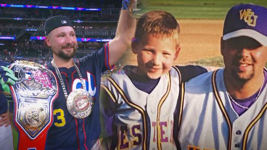 아들이 걸음마를 떼기도 전에 야구 배트를 쥐어준 아버지는 감격에 젖었습니다.