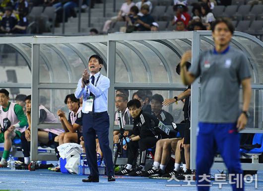 [용인(경기)=스포츠투데이 팽현준 기자] 15일 용인미르스타디움에서 열린 2025 EAFF E-1 챔피언십(동아시안컵) 한국과 일본의 경기, 후반 일본 모리야스 하지메 감독이 선수들을 보고 있다. 2025.07.15. [스포츠투데이 팽현준 기자 sports@stoo.com]
