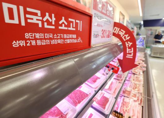15일 서울 시내 한 대형마트에 미국산 소고기가 진열돼 있다. 연합뉴스 |