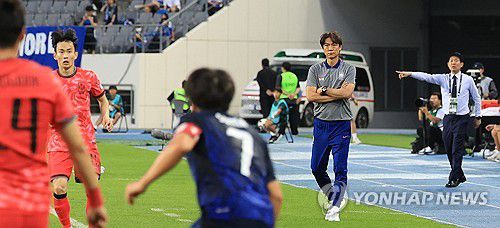 (용인=연합뉴스) 최재구 기자 = 15일 경기도 용인미르스타디움에서 열린 2025년 동아시아축구연맹(EAFF) E-1 챔피언십(동아시안컵) 남자부 최종 3차전 한국과 일본의 경기에서 한국 대표팀의 홍명보 감독이 경기를 지켜보고 있다. 2025.7.15