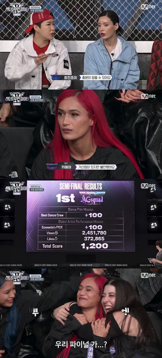 세미파이널 결과 공개에 앞서 에이지 스쿼드의 카에아는 "가산점 200점을 받아서 이길 수도 있겠다는 희망이 생겼다"며 기대감을 드러냈다.