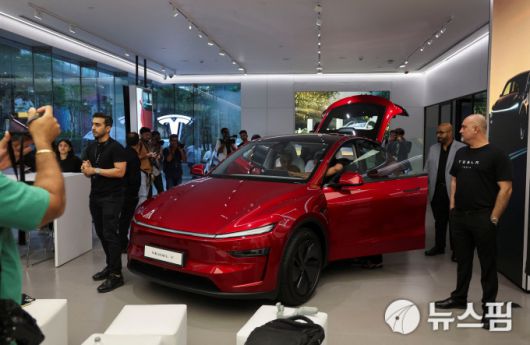 [뭄바이 로이터=뉴스핌] 장일현 특파원 = 미국 전기차 업체 테슬라가 15일(현지시간) 인도 뭄바이에 첫 쇼룸을 열고 7만 달러짜리 '모델-Y'를 출시했다. 2025.07.16. 2025.07.16 ihjang67@newspim.com |