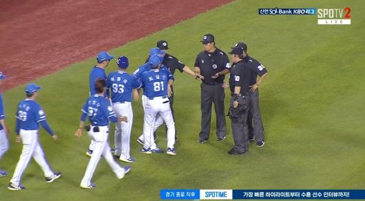 박 감독은 3루심에게 다가가 강하게 불만을 드러냈다. 최일언 수석코치 등 코치들도 박 감독을 말리기 위해 그라운드에 나올 만큼 박 감독이 화를 표출했다.