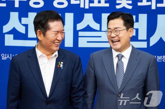 (서울=뉴스1) 임세원 기자 = 8·2 더불어민주당 전당대회 당대표 선거에 나선 정청래·박찬대 의원이 16일 첫 방송 토론에서 맞붙는다. 두 후보는 이재명 대통령과의 관계를 전면에 내세우며 당심(黨心) 쟁탈전에 본격 돌입할 예정이다.