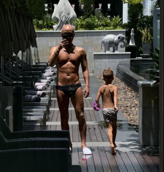 공개된 사진에는 태국 방콕의 한 호텔 수영장에서 거울 셀카를 찍는 홍석천의 모습이 담겼다. 블랙 스윔웨어를 입고 선글라스를 착용한 그는 군살 없는 상체와 선명한 복근을 드러냈다. 거울 너머로 수영장을 활보하는 어린아이가 함께 포착되며 자연스러운 일상이 연출됐다.