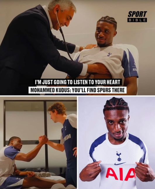 토트넘은 쿠두스 영입 발표 이후 그가 메디컬 테스트를 받는 모습을 공개했다. 매체에 따르면 의사가 쿠두스에게 "당신의 심장 소리를 들어보겠다"라고 말하자, 쿠두스는 "내 심장에서 토트넘을 찾게 될 거다"라며 웃었다.