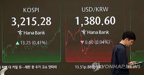 전날 코스피는 미국 소비자물가지수(CPI) 발표를 앞둔 관망세 속에도 0.41% 올라 3,215.28에 장을 마쳤다. 이틀 연속 상승세다.