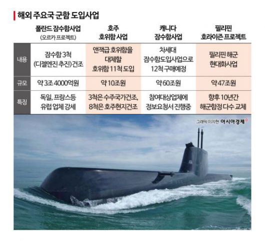 폴란드에 이어 캐나다 잠수함 사업 등 60조원 넘어