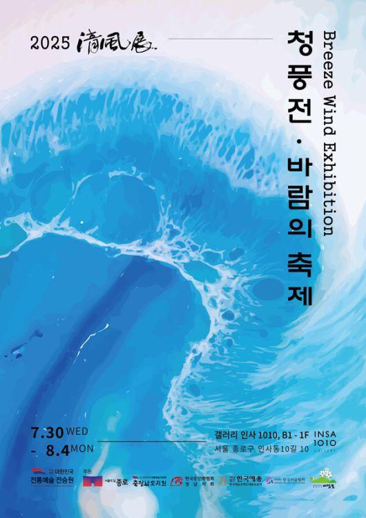 [백현석 기자] (문화뉴스 백현석 기자) 대한민국전통예술전승원이 서울 종로구 인사동에 위치한 갤러리 인사 1010에서 7월 30일부터 8월 4일까지 '2025 청풍전(淸風展), 바람의 축제'를 게최한다.