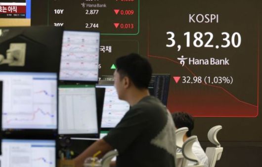 코스피지수가 하루만에 3,200선이 무너진 16일 서울 중구 하나은행 딜링룸 모니터에 코스피를 비롯해 원/환율, 코스닥 지수가 표시돼 있다. 이날 코스피는 전 거래일 대비 0.24% 내린 3207.48에 코스닥지수도 0.34% 내린 810.09로 시작해 하락폭을 키우고 있다. <ⓒ투자가를 위한 경제콘텐츠 플랫폼, 아시아경제(www.asiae.co.kr) 무단전재 배포금지>