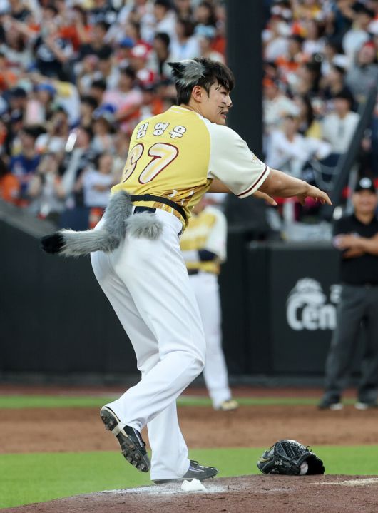이날 김영우의 최고 구속은 157km까지 찍혔다. 그것도 EXO의 '으르렁'에 맞춰 '댄스 퍼포먼스'를 선보이고 구자욱에게 초구를 던진 결과여서 더욱 놀라움을 자아냈다.