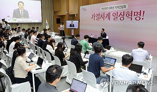 (서울=연합뉴스) 서대연 기자 = 16일 서울 중구 서울시청에서 오세훈 서울시장 민선 8기 취임 3주년 기자간담회가 열리고 있다. 2025.7.16 [공동취재]