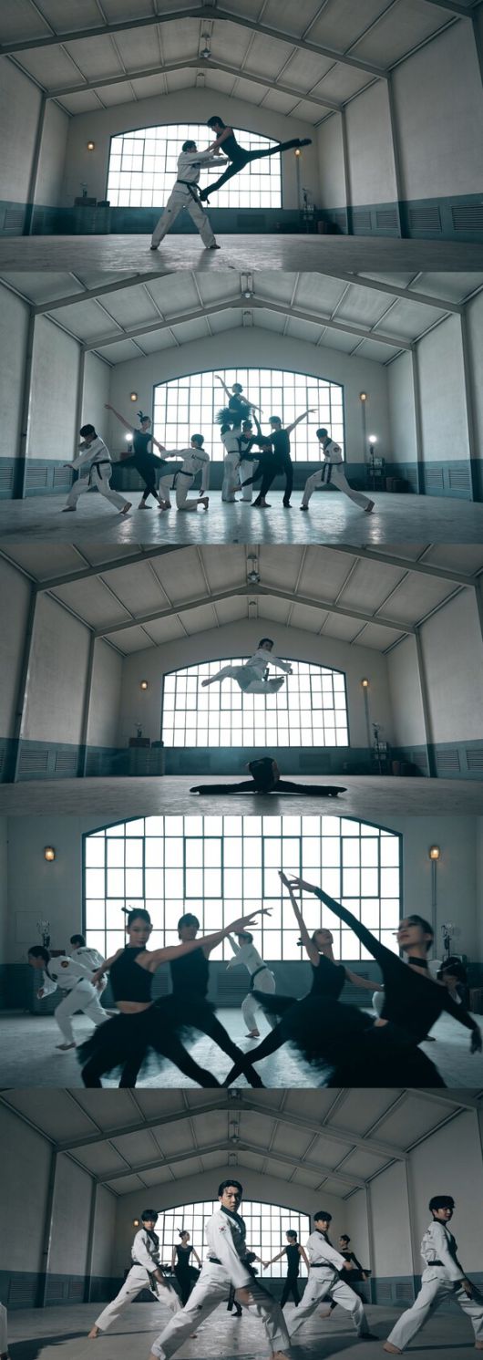 영상은 절제된 몸짓으로 우아한 발레를 선보이는 발레단과 함께 그 뒤로 K타이거즈 태권도단이 등장해 시작부터 시선을 사로잡는다. 이어 정민찬이 솔로로 턴 동작을 선보이고, 태권도단이 그를 둘러싸며 역동적인 동작을 펼쳐 에너지를 더한다. 특히 마치 블랙스완 자태를 연상케 하는 발레단의 우아한 선과 태권도단의 정교한 기술이 어우러지며 동서양 예술의 아름다움이 극적으로 펼쳐진다.