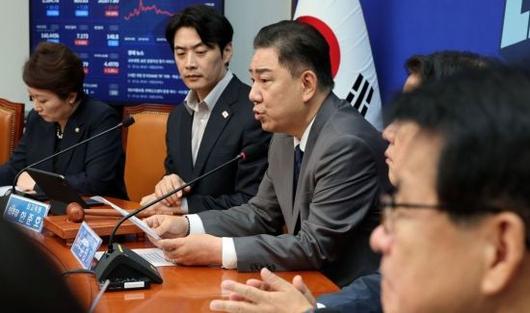 김병기 더불어민주당 당대표 직무대행 겸 원내대표가 16일 국회에서 열린 최고위원회의에서 발언하고 있다. <ⓒ투자가를 위한 경제콘텐츠 플랫폼, 아시아경제(www.asiae.co.kr) 무단전재 배포금지>