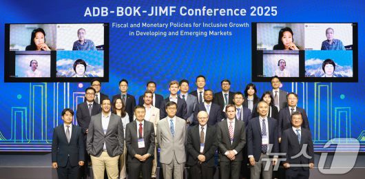 (서울=뉴스1) = 이창용 한국은행 총재가 16일 서울 중구 한국은행에서 열린 'ADB-BOK-JIMF 컨퍼런스'에서 참석자들과 함께 기념 촬영을 하고 있다. (한국은행 제공. 재판매 및 DB 금지) 2025.7.16/뉴스1photo@news1.krCopyright ⓒ 뉴스1. All rights reserved. 무단 전재 및 재배포, AI학습 이용 금지.