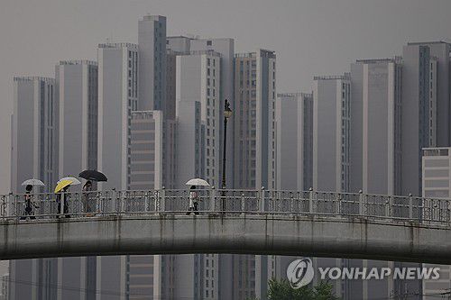 (의정부=연합뉴스) 임병식 기자 = 전국에 비가 내린 16일 오전 경기도 의정부시 중랑천에서 시민들이 우산을 쓰고 이동하고 있다. 2025.7.16