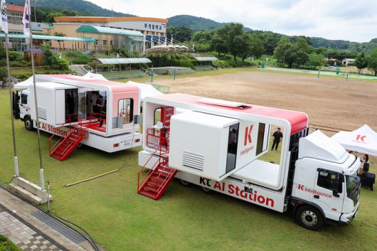 KT는 도서산간 지역 청소년에게 수준 높은 인공지능(AI) 교육 기회를 제공하고, 전 국민이 AI 기술을 쉽고 흥미롭게 체험할 수 있도록 구성한 이동식 AI 체험관 KT AI 스테이션 운영을 시작한다고 16일 밝혔다.