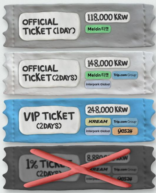 컬쳐띵크는 문제의 1% 티켓에 대해 "해당 티켓은 새로운 관객 경험을 제공하는 프리미엄 티켓으로 기획됐으며, 다수의 해외 페스티벌에서 운영되는 혜택과 서비스를 국내에도 도입하고자 준비하던 권종이었다"고 해명했다.