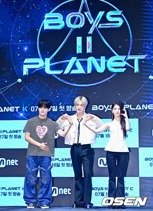 [OSEN=지형준 기자] 16일 서울 구로구 신도림동 더 세인트에서 Mnet '보이즈 2 플래닛' 제작발표회가 열렸다.‘보이즈 2 플래닛’은 ‘K-POP 월드 스케일 데뷔 프로젝트’라는 타이틀에 걸맞게 전례 없는 규모와 구성으로 글로벌 팬덤의 기대를 받고 있다. 글로벌 팬덤 ‘스타 크리에이터’와 함께 월드 스케일 K-POP 데뷔 여정을 펼칠 ‘보이즈 2 플래닛 K’, ‘보이즈 2 플래닛 C’는 오는 7월 17일(목)과 18일(금) 밤 9시 20분 첫 방송한다.가수 제이릭, 김재중, 샤오팅이 포즈를 취하고 있다. 2025.07.16 / jpnews@osen.co.kr |