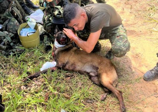 콜롬비아 안티오키아 욘도에서 군견 산손이 테러 조직 ELN이 설치한 폭발물을 탐지해 36명의 병사와 민간인의 목숨을 구했다. 산손은 폭발로 다리를 잃었으나 몸을 끌어 조련사에게 다가왔다. (사진=콜롬비아 육군) |