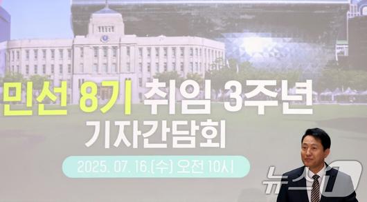 오세훈 서울시장이 16일 오전 서울 중구 서울시청에서 열린 민선8기 취임3주년 기자간담회에 참석하고 있다. (공동취재) 2025.7.16/뉴스1 ⓒ News1 이동해 기자 |