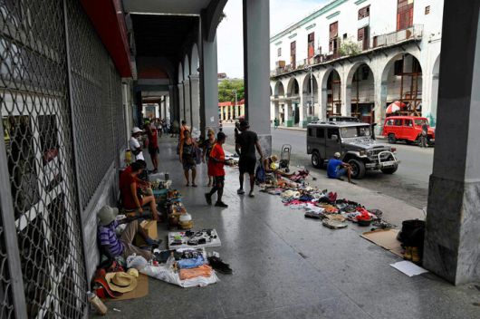 지난 15일 쿠바 수도 아바나 시내 길거리에서 사람들이 물건을 파는 모습. 로이터연합뉴스 |