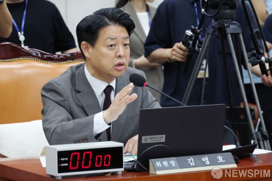 [서울=뉴스핌] 정일구 기자 = 16일 오전 서울 여의도 국회 교육위원회에서 열린 이진숙 부총리 겸 교육부 장관 후보자 인사청문회에서 김영호 위원장이 발언하고 있다. 2025.07.16 mironj19@newspim.com