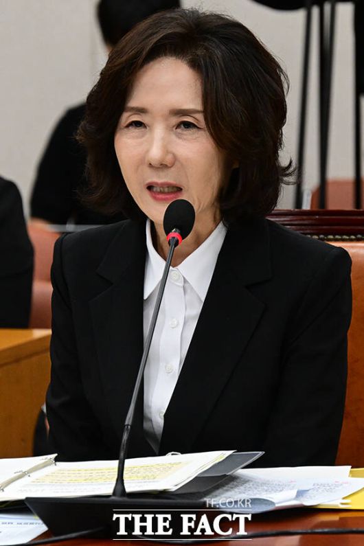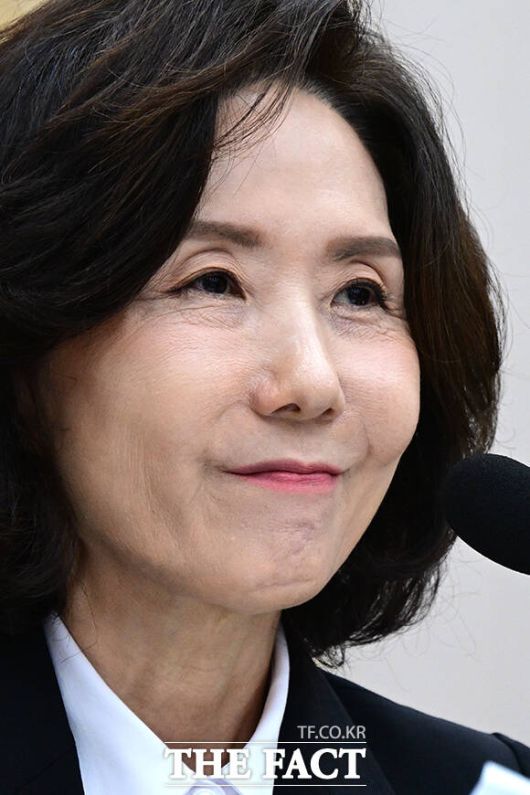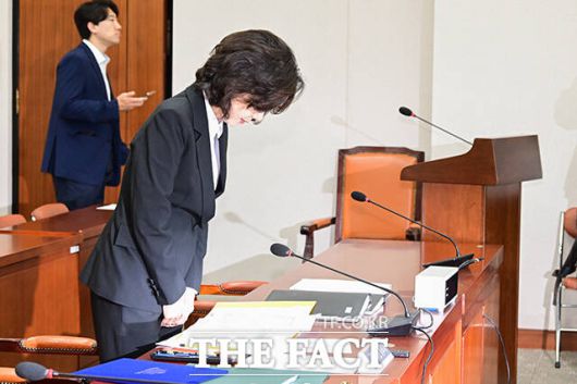 [더팩트ㅣ국회=남윤호 기자] 이진숙 사회부총리 겸 교육부 장관 후보자가 16일 오전 서울 여의도 국회 교육위원회에서 열린 인사청문회에 출석해 자신을 향해 제기된 일련의 의혹에 대해 사과하며 고개를 떨구고 있다.