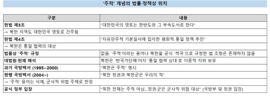 그렇다면 ‘주적’은 우리 헌법이나 법률, 혹은 국방백서에 명시된 개념일까.