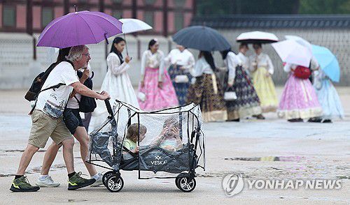 (서울=연합뉴스) 김성민 기자 = 비가 내린 16일 서울 종로구 경복궁에서 외국인 관광객들이 유모차를 끌고 이동하고 있다. 2025.7.16 ksm7976@yna.co.kr ▶제보는 카카오톡 okjebo▶연합뉴스 앱 지금 바로 다운받기~▶네이버 연합뉴스 채널 구독하기 <저작권자(c) 연합뉴스, 무단 전재-재배포, AI 학습 및 활용 금지><저작권자(c)연합뉴스. 무단전재-재배포금지.>