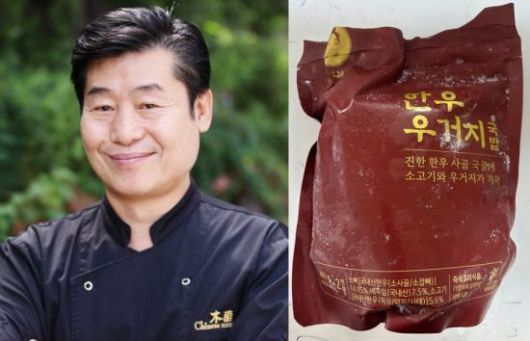 이연복 셰프(왼쪽)와 판매 중지된 '이연복의 복주머니 한우 우거지 국밥'. 연합뉴스·식품의약품안전처 |