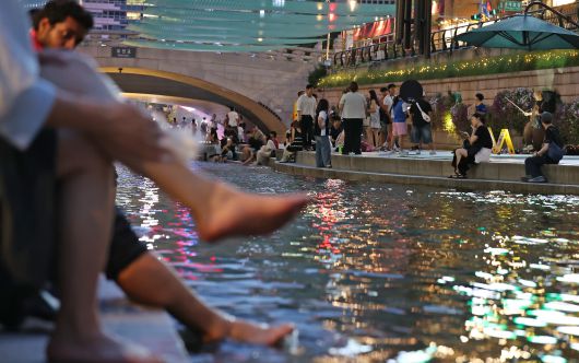 (서울=뉴스1) 장수영 기자 = 이른 폭염과 함께 열흘 넘게 열대야가 이어지고 있는 9일 저녁 서울 중구 청계천을 찾은 시민들이 더위를 식히고 있다. 2025.7.9/뉴스1 |