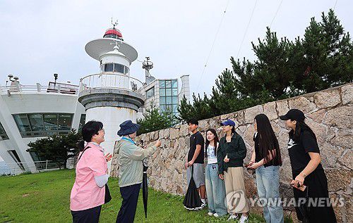 (인천=연합뉴스) 임순석 기자 = 제7회 세계등대의 날을 기념해 16일 인천 중구 팔미도등대에서 진행된 팔미도등대 청소년 체험교실에 참여한 학생들이 등대에 관한 설명을 듣고 있다.