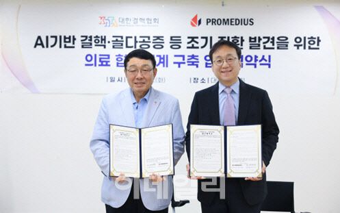 [이데일리 임정요 기자] 노화 대사질환 예방 AI 기업 프로메디우스가 지난 15일, 대한결핵협회와 결핵 및 골다공증의 예방과 조기 발견을 위한 업무협약(MOU)을 체결했다.