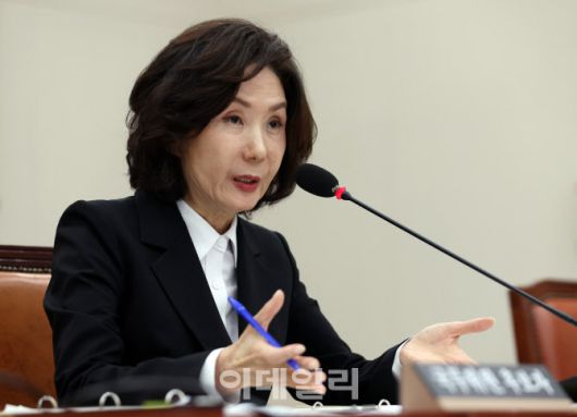 [이데일리 노진환 기자] 이진숙 사회부총리 겸 교육부 장관 후보자가 16일 오후 서울 여의도 국회 교육위원회 전체회의에서 열린 인사청문회에 출석, 질의에 답변하고 있다.