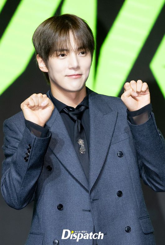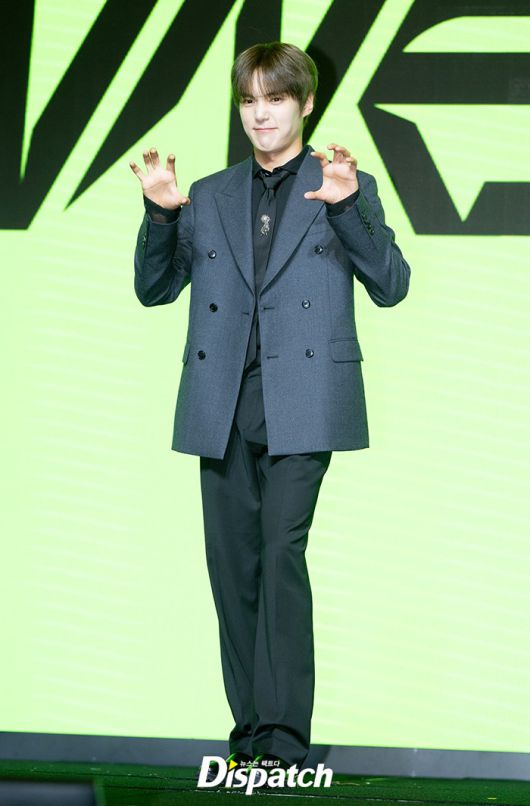민혁은 그레이 수트로 멋진 맵시를 뽐냈다. 다양한 귀여운 포즈로 여심을 사로잡았다.