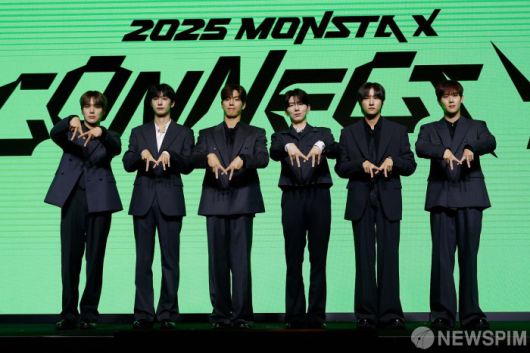 [서울=뉴스핌] 류기찬 인턴기자 =보이그룹 몬스타엑스 멤버들이 16일 오후 서울 영등포구 콘래드 서울에서 열린 데뷔 10주년 기념 콘서트 '커넥트 엑스(Connect X)' 기자간담회에서 포즈를 취하고 있다. 2025.07.16 ryuchan0925@newspim.com |