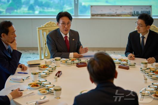 김민석 국무총리가 지난 7일 서울 용산 대통령실 청사에서 열린 이재명 대통령과의 오찬회동에서 발언을 하고 있다. (이재명 대통령 SNS. 재판매 및 DB 금지) 2025.7.8/뉴스1 ⓒ News1 이재명 기자 |